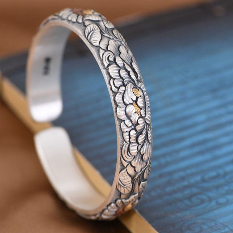 - 牡丹のバングル - 職人の手による精巧な彫金技術が光る B078