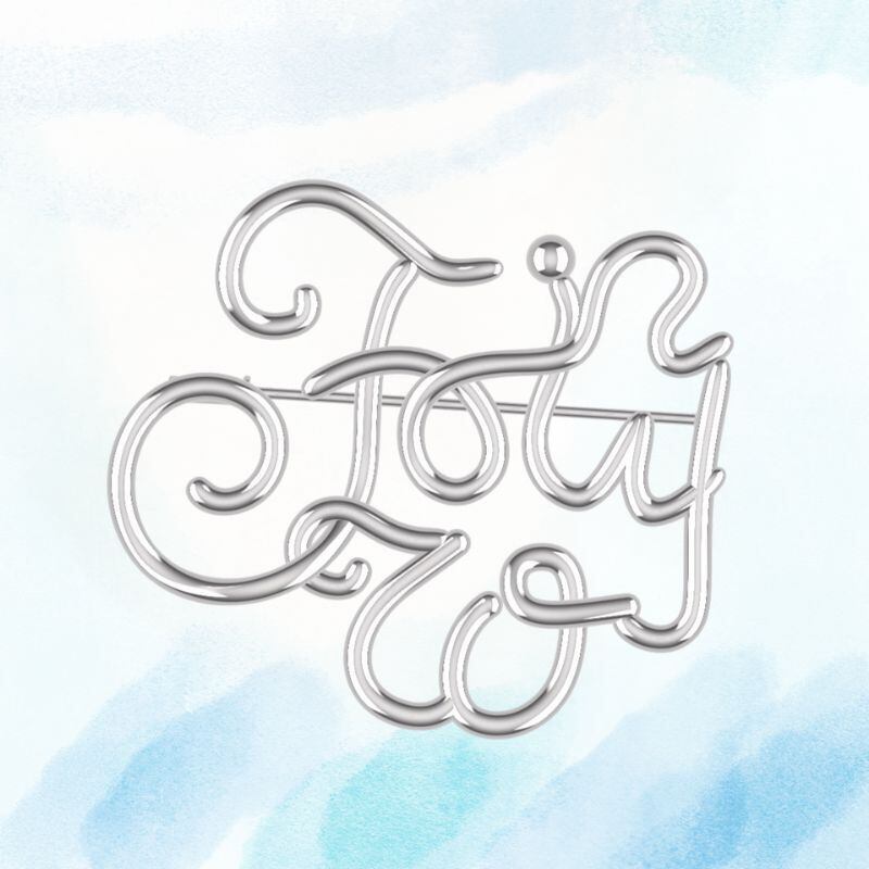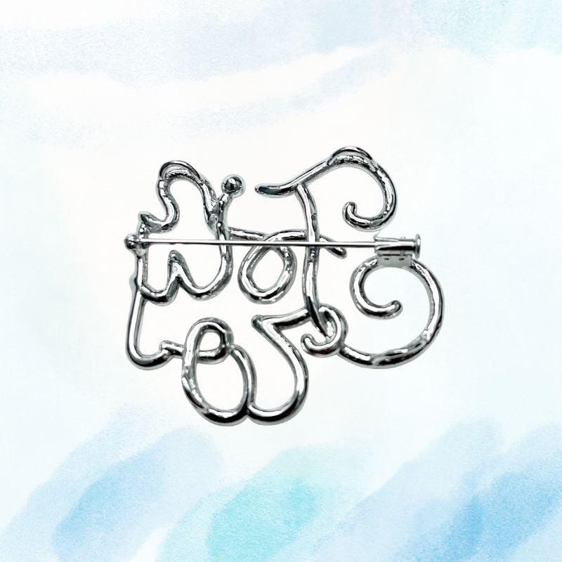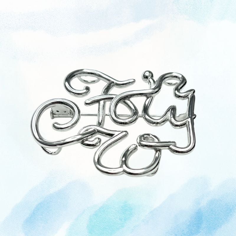 こちらのブローチは、お客様のロゴを基にした線で構成された独特なデザインが魅力です。単なる線での表現に留まらず、立体感を持たせて製作しました。今回は銀色で仕上げましたが、パールを追加したり、金色に変更することも可能です。