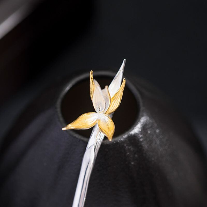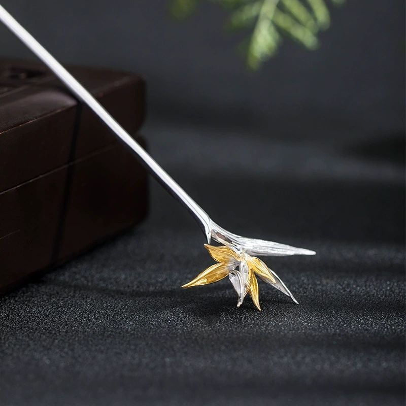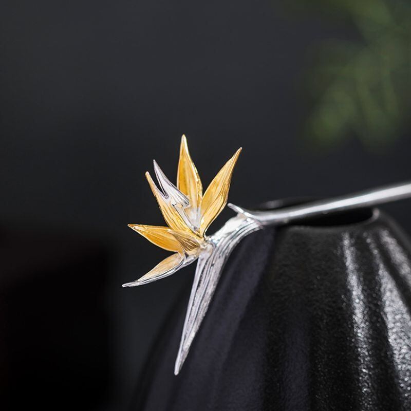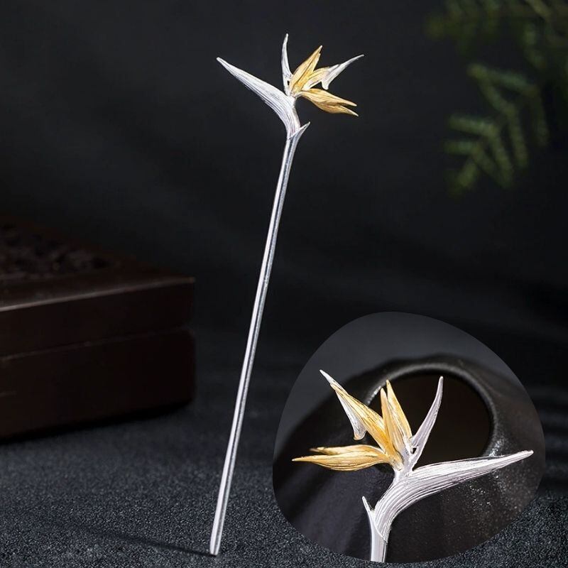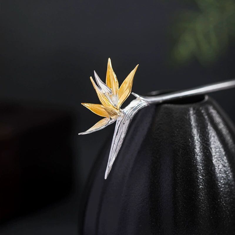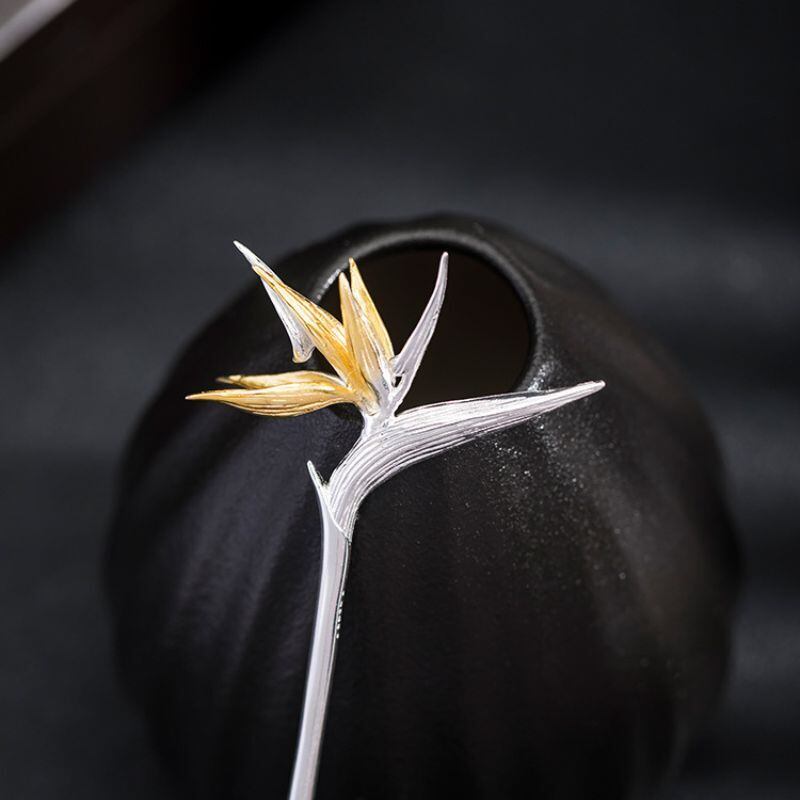 ゴクラクチョウカをテーマにしたかんざしは、「輝かしい未来」や「情熱」、そして「すべてを手に入れる」を象徴しています。上品な色合いと独特な形状が特徴のゴクラクチョウカのかんざしは、人々の目を引きつけます。花びらは、生命力に満ちた形で表現され、見る人に活力と希望を与えます。葉っぱのデザインは、しなやかさと動きを感じさせ、まるで風に揺れる姿を思わせます。このかんざしを身につけることで、持つ人の個性を際立たせ、どんな場面でも自信に満ちた印象を与えることでしょう。ゴクラクチョウカのかんざしは、未来への期待と情熱を胸に、日々を輝かせるアクセサリーとして最適です。