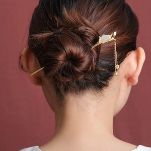 蓮の花をテーマにしたかんざしは、その流れるような形状が特徴です。花の部分にはネフライトが使用され、優雅さを象徴する蓮の花の魅力を見事に表現しています。身に着けることで、まるで穏やかな池に浮かぶ蓮の花のように、心に安らぎをもたらします。繊細なデザインは和装だけでなく洋装にも調和し、特別な日の装いに華やかさを添えます。その独特な輝きは、どの角度から見ても視線を引きつけ、時を超えた美しさを放っています。このかんざしは、自然の美と職人の技が融合した一品で、身に着ける人の個性を引き立て、特別な瞬間をさらに輝かせます。
