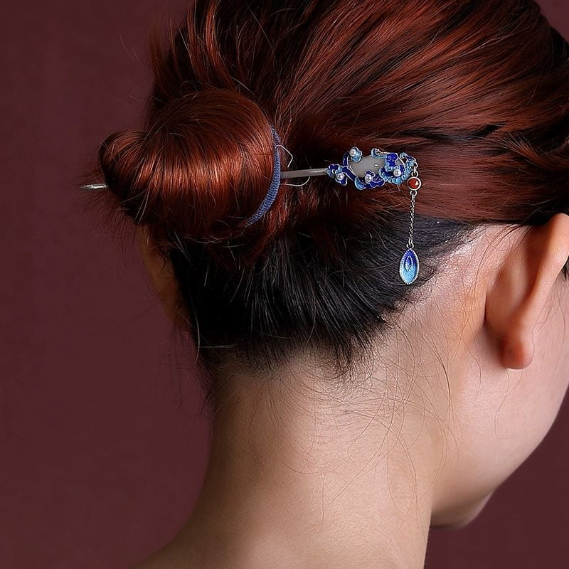 雲をテーマにしたかんざしで、パールやネフライト、瑪瑙などの宝石をあしらった豪華な髪飾りです。まるで空に浮かぶ雲のように優雅で、見る者の心を捉えます。繊細なデザインと高級な素材が組み合わさり、特別な日の装いにぴったりです。職人の手によって一つ一つ丁寧に作られ、細部にまでこだわりが感じられます。このかんざしを身に着けると、まるで雲の上を歩いているかのような気分になり、どこか神秘的な雰囲気を漂わせます。特に和装との相性が抜群で、華やかな着物をさらに引き立ててくれることでしょう。
