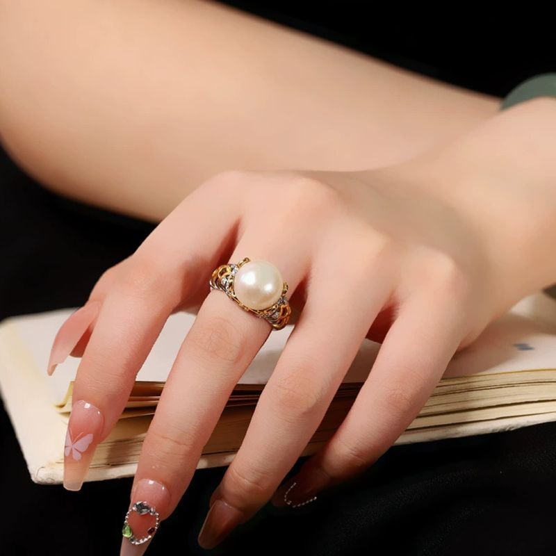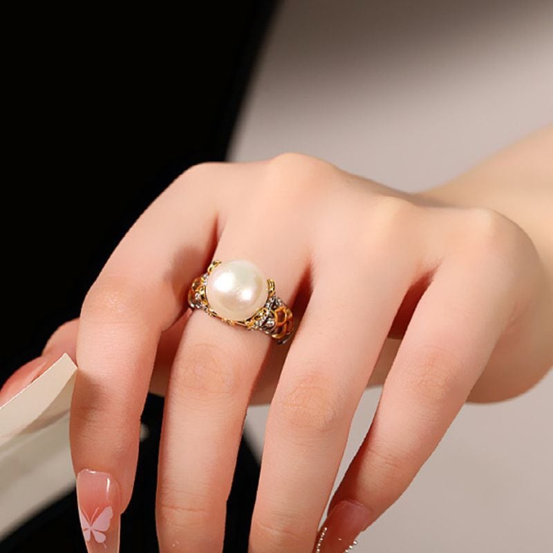 パールが引き立つレースリングは、繊細な模様が上品さを一層引き立てます。このリングは、特別な日の装いにぴったりで、その優雅さはどんな場面でも視線を集めます。パールの柔らかな輝きとレース模様の繊細なデザインが調和し、時を超えて愛される一品となるでしょう。贈り物としても、自分へのご褒美としても、心に残る特別なアクセサリーです。