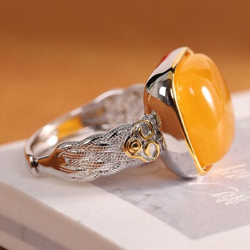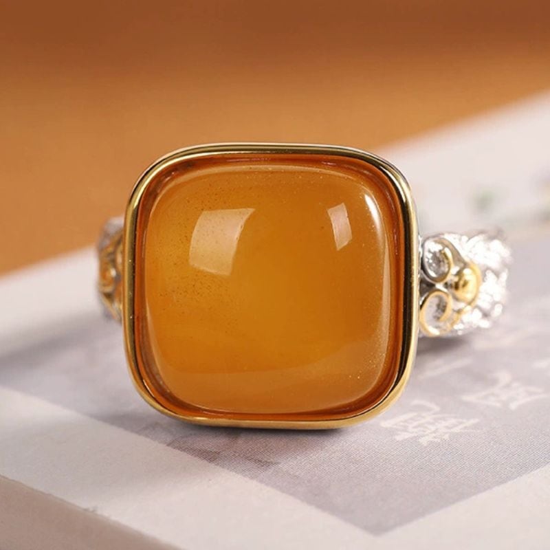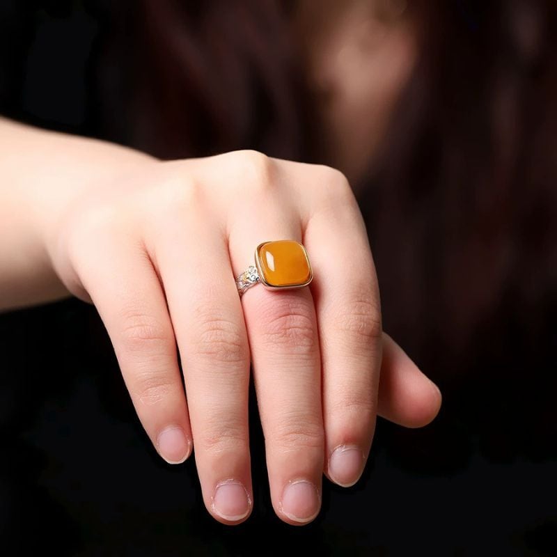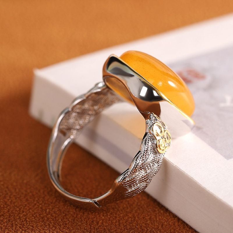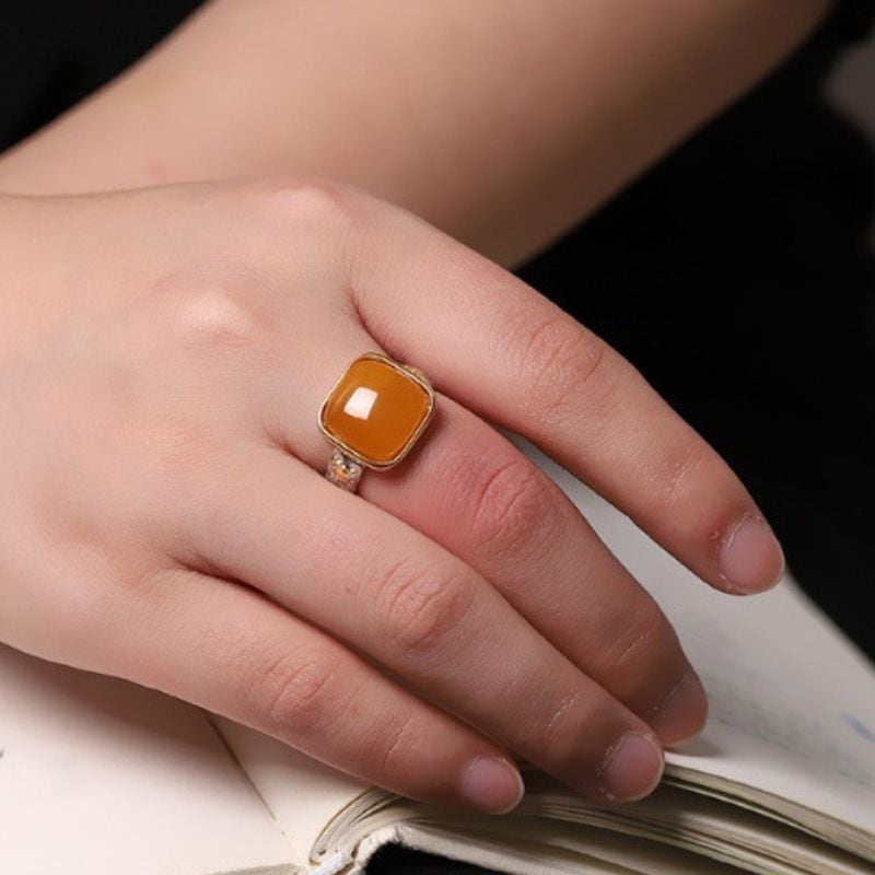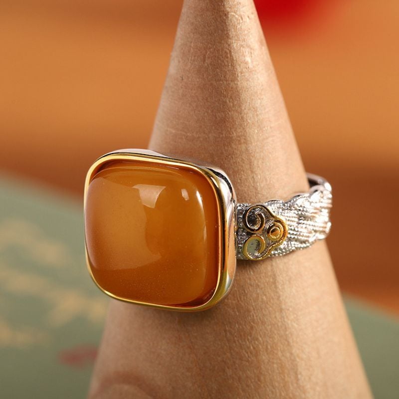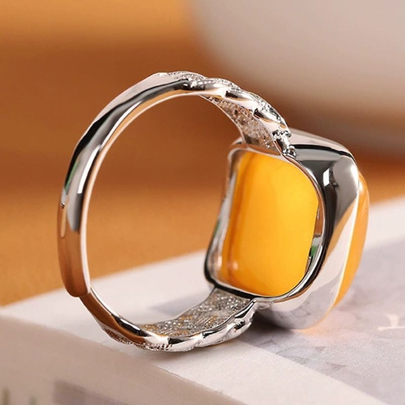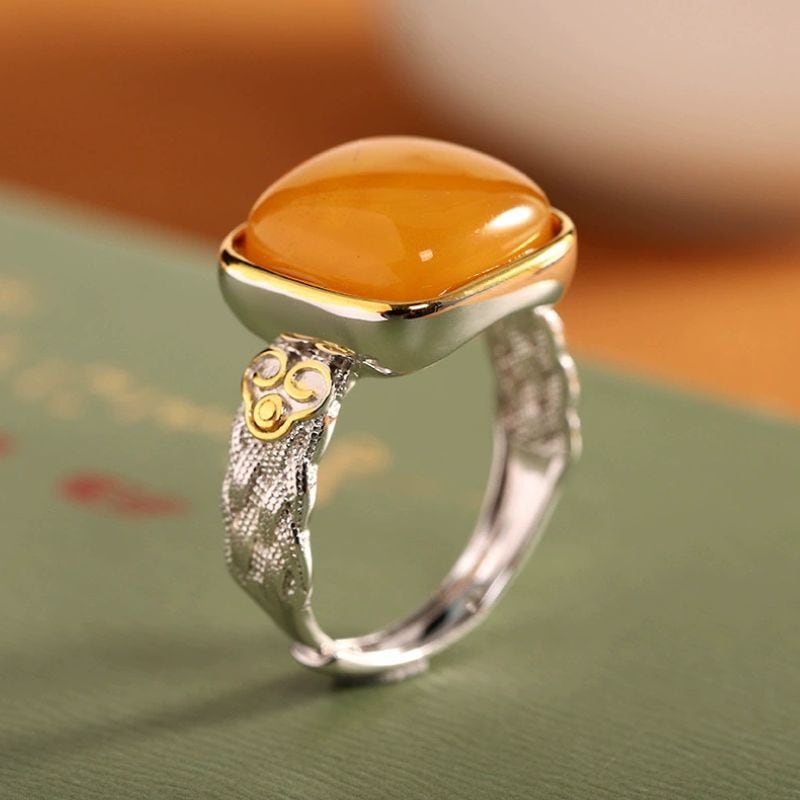 ミルキーアンバーのリング - 優雅な曲線が手元を美しく彩る R456