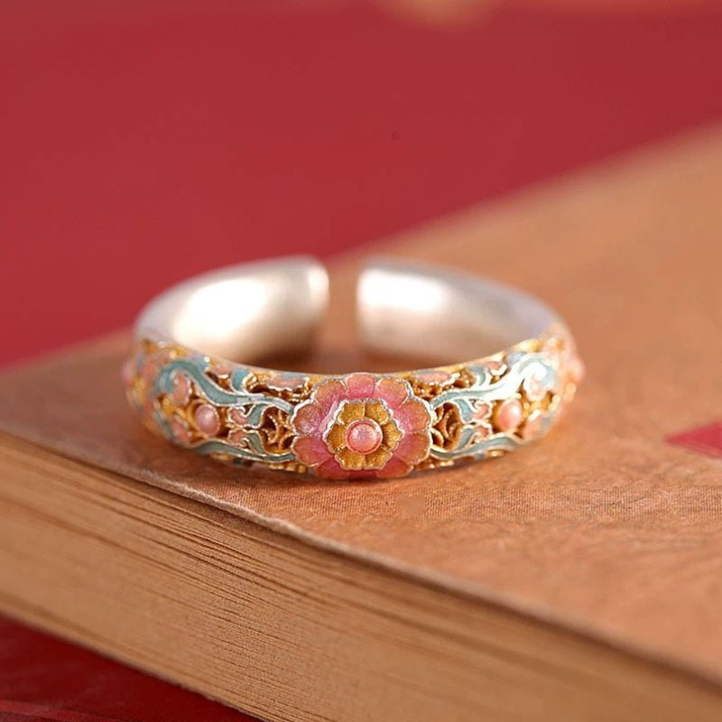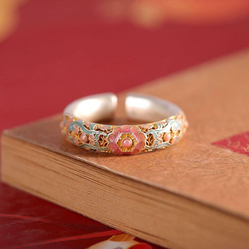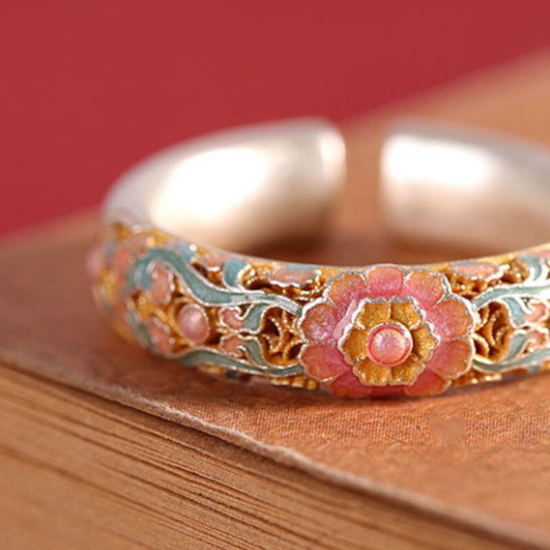 - 花のリング - 七宝焼が施されて自然の美しさを指先で感じる R457