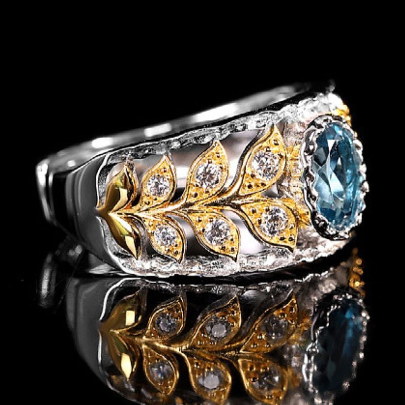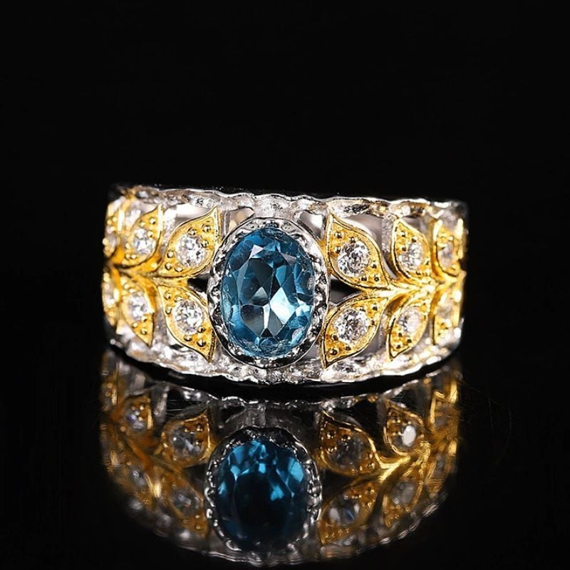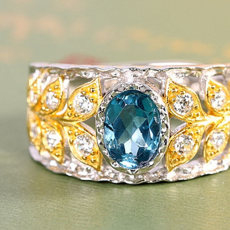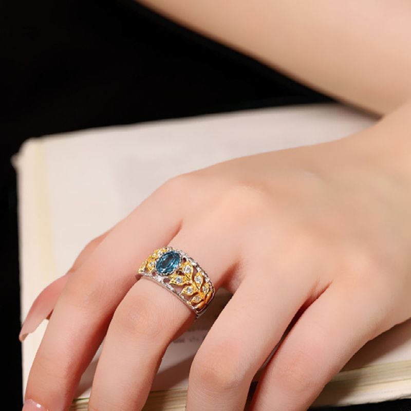 ブルートパーズリング - 自然の優雅さを表現する葉のデザイン R459