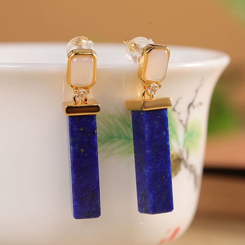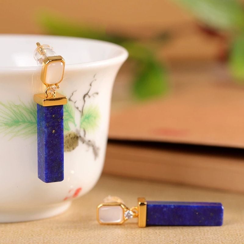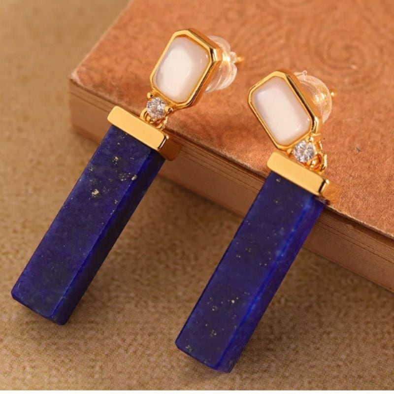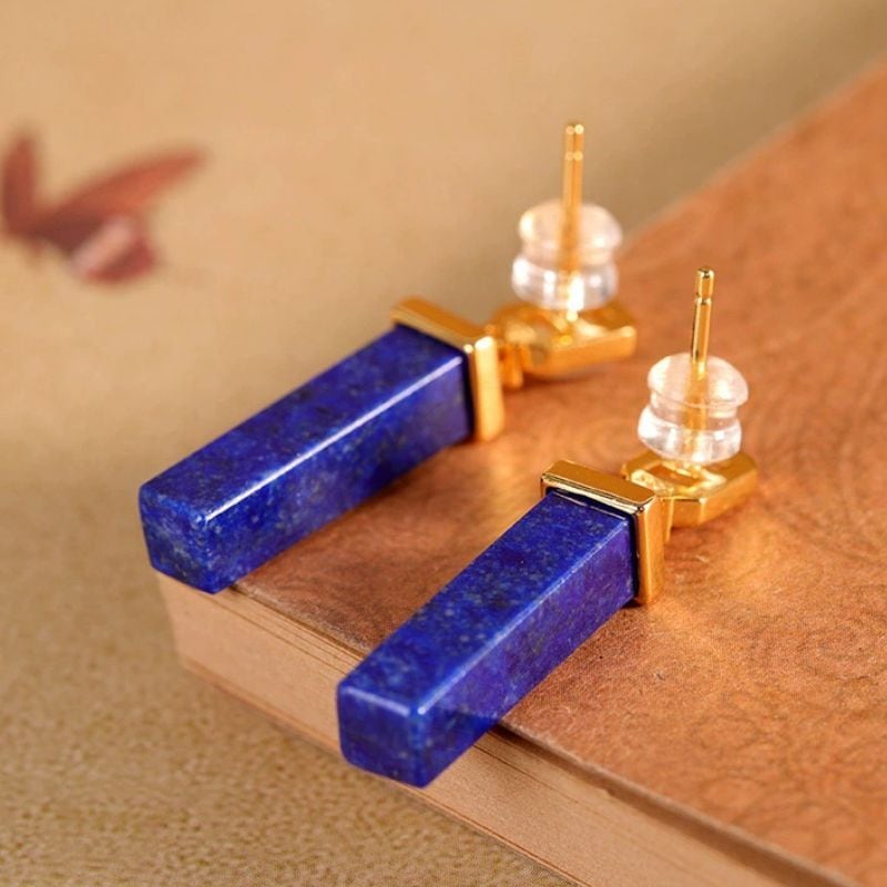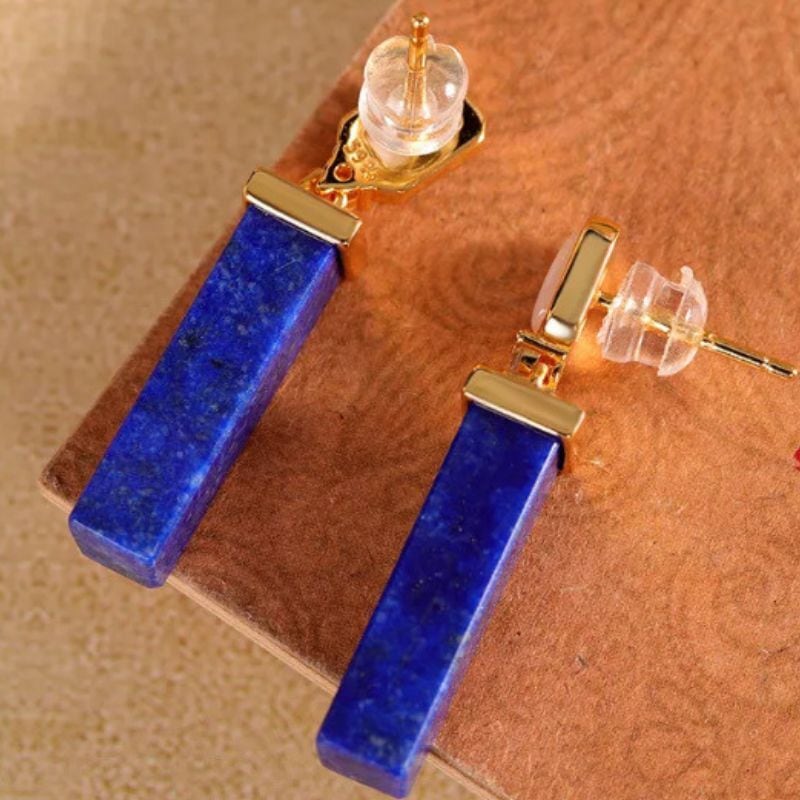 ラピスラズリのピアス - 美しい青と透明の石が耳元で優雅に輝く P206
