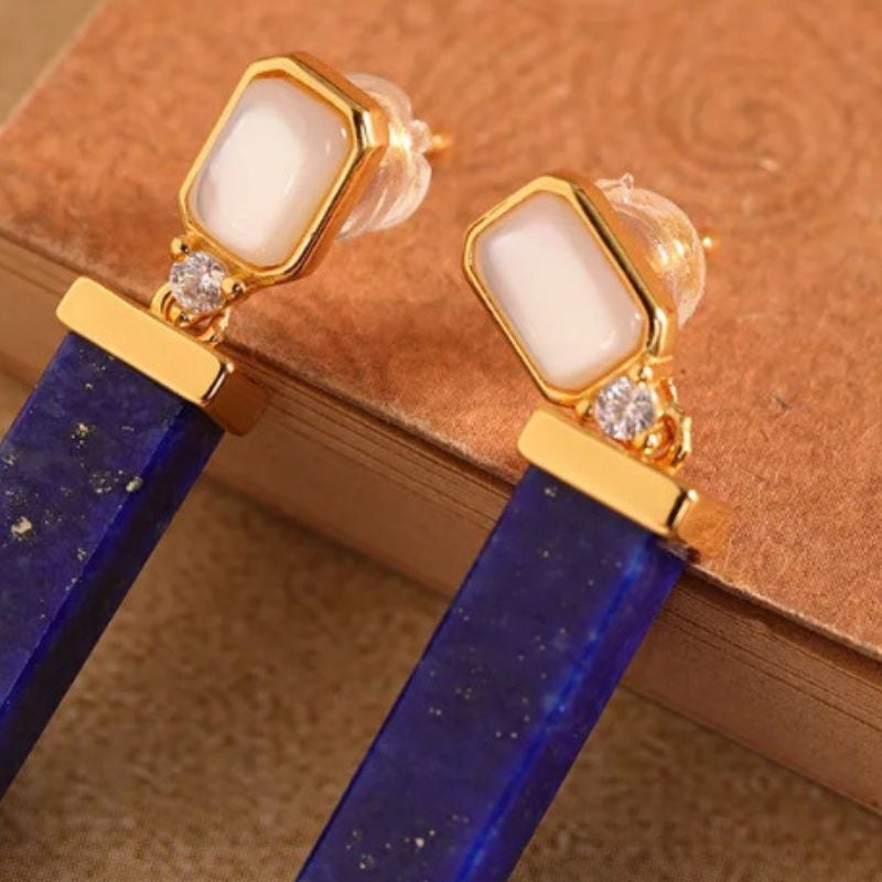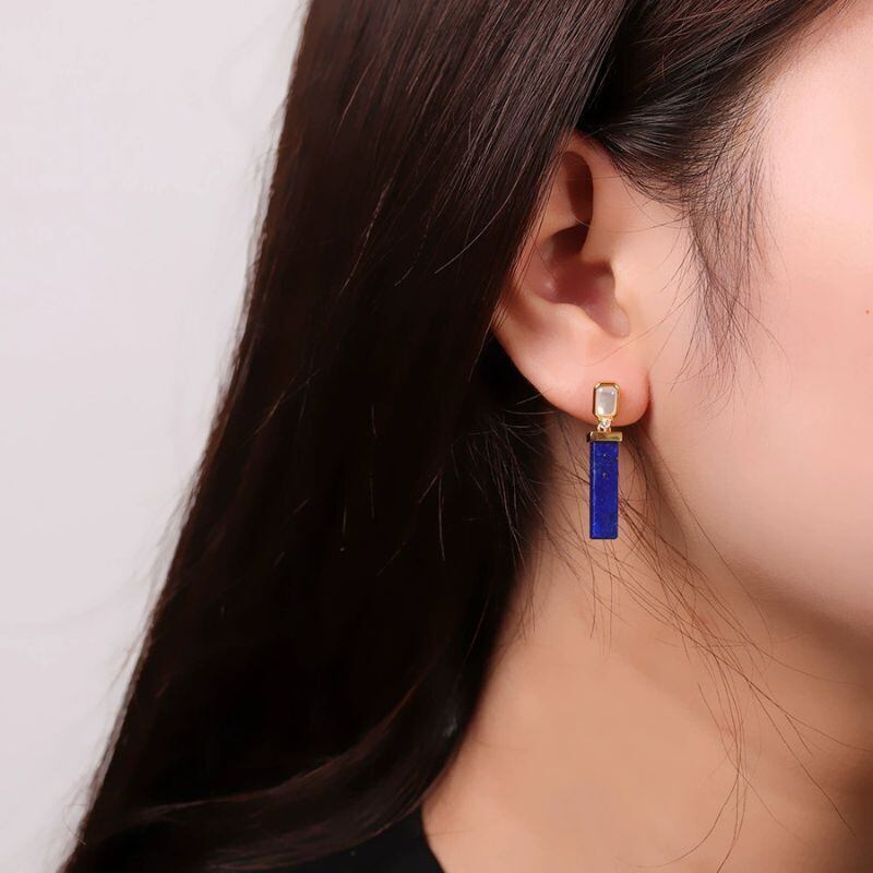 - ラピスラズリのピアス - 美しい青と透明の石が耳元で優雅に輝く P206