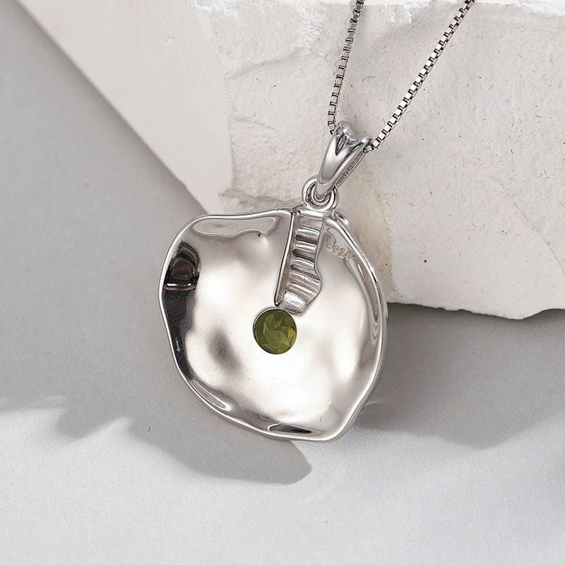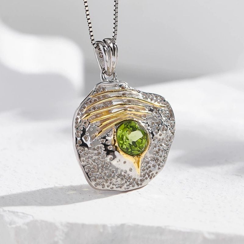 <受注制作>ペリドットのペンダント - ユニークなラインとテクスチャーが特徴 N154