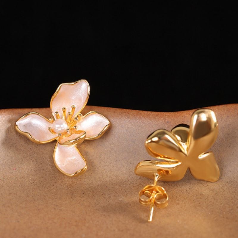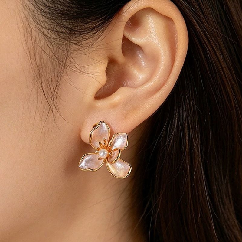 不断桜をテーマにしたピアスは、風に揺れる美しい形をリアルに表現しており、七宝焼きやパールの装飾が施された上品なアクセサリーです。パールは不断桜の中央に配置され、咲き誇る花の中心で輝く朝露のように見えます。このアクセサリーは、自然界の儚さと永遠の美を映し出し、身につける人に特別な瞬間を刻むことでしょう。風に揺れる桜の花びらのように、身につけるたびに優雅に揺らめき、見る人の心を惹きつけます。