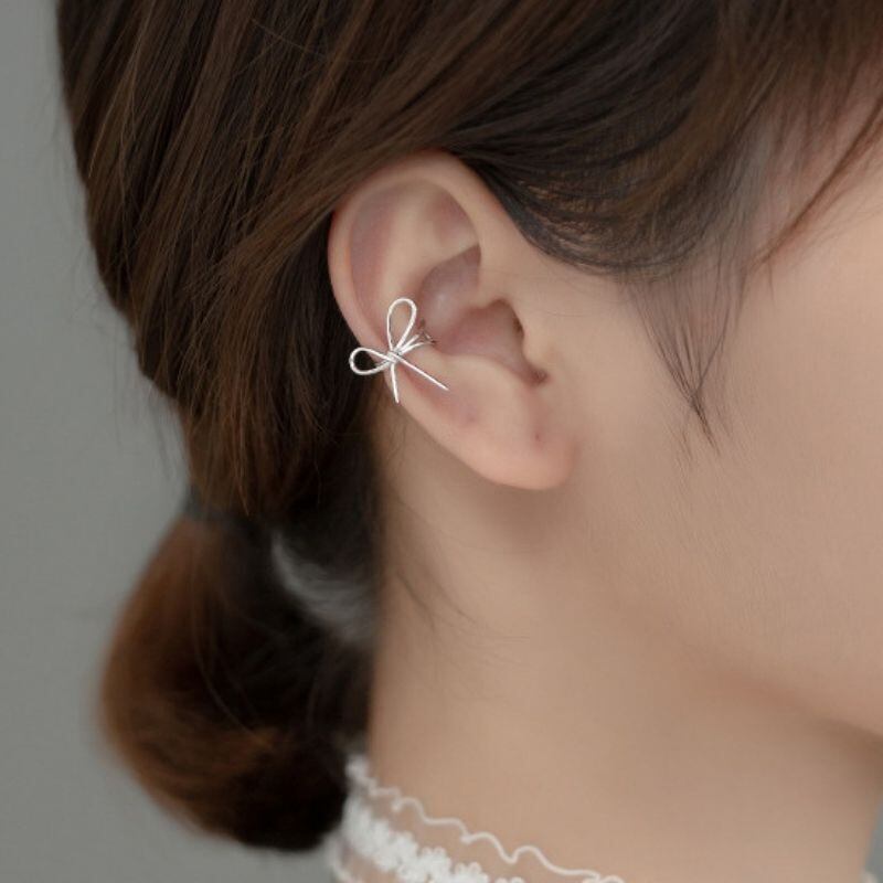 リボンをモチーフにしたイヤーカフは、シンプルな線で構成されており、耳元で優雅な曲線が華やかさを引き立てます。シンプルなデザインが上品な印象を与え、どんなスタイルにも合わせやすく、日常から特別な場面まで幅広く楽しめます。耳元に華やかさと品の良さをプラスして、おしゃれを楽しみましょう。